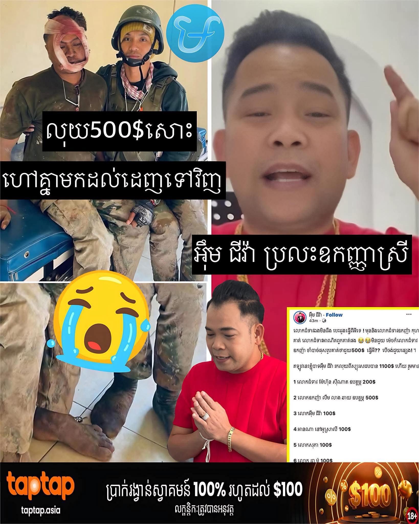 ហួសចិត្តគិតឡេីងវិញលោកជំទាវឧកញ្ញាតែឈ្មោះ បេីថាជួយហេីយជួយទៅ😰🙏😤 លោក អុឹម ជីវ៉ា ចេញសារដាស់តឿនអោយឧកញ្ញាស្រីម្នាក់ចេះភ្ញាក់ខ្លួនត្រឹមលុយ500$សោះ “លោកជំទាវឯងមិនដឹង បេះដូងធ្វើពីអីទេ ! មុននិងលោកជំទាវឧកញ៉ា កុហកគាត់ លោកជំទាវអាណិតពួកគាត់ផង 😭😭មិនជួយ ម៉េចក៏លោកជំទាវឧកញ៉ា ចាំបាច់ផុសរូបគាត់ថាជួយ500$ ធ្វើអី?? បើចង់ជួយផ្សេង! ។ ឥឡូវនេះខ្ញុំបាទអុឹម ជីវ៉ា រកលុយពីស្បុរសជបបាន 1100$ ហើយ រួមមាន : 1 លោកជំទាវ ម៉ែហ៊ុន សុីណាត ឧបត្ថម្ភ 200$