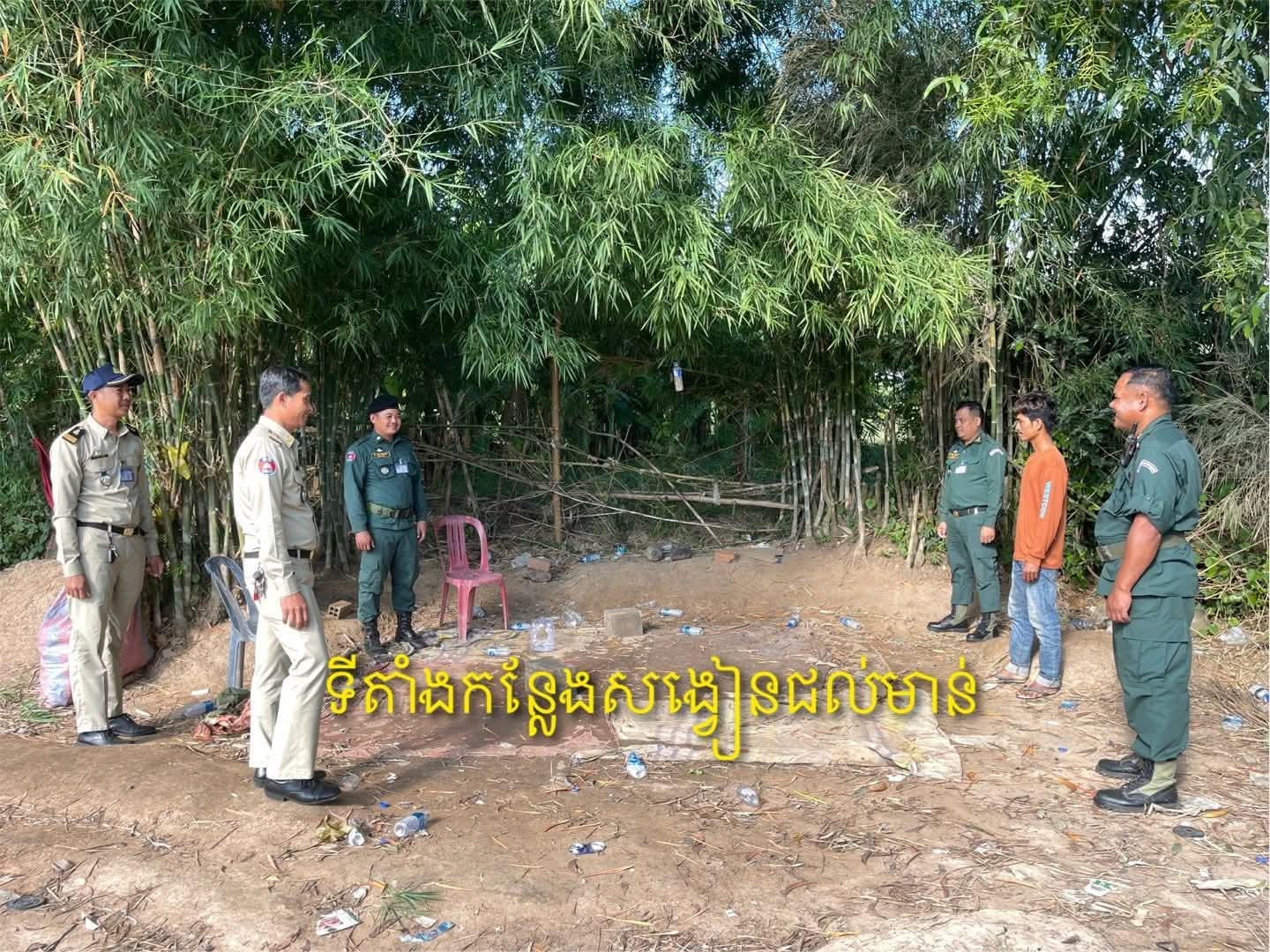 នគបាលរដ្ឋបាលប្ញស្សីក្រាំង នៃអធិការដ្ឋាននគបាលស្រុកមោងប្ញស្សី បានចុះស្រាវជ្រាវឃេីញថា ទីតាំងដែលផ្សាយតាមបណ្តាញសង្គមនោះ ស្ថិតនៅក្រោមគុម្ពឬស្សីត្រង់ចំណុចក្រុមទី០៨ ភូមិអំពិលឈូង ឃុំប្ញស្សីក្រាំង ស្រុកមោងប្ញស្សីខេត្តបាត់ដំបង នៅខាងក្រោយភូមិប្រហែល៩០ម៉ែត្រ ដែល