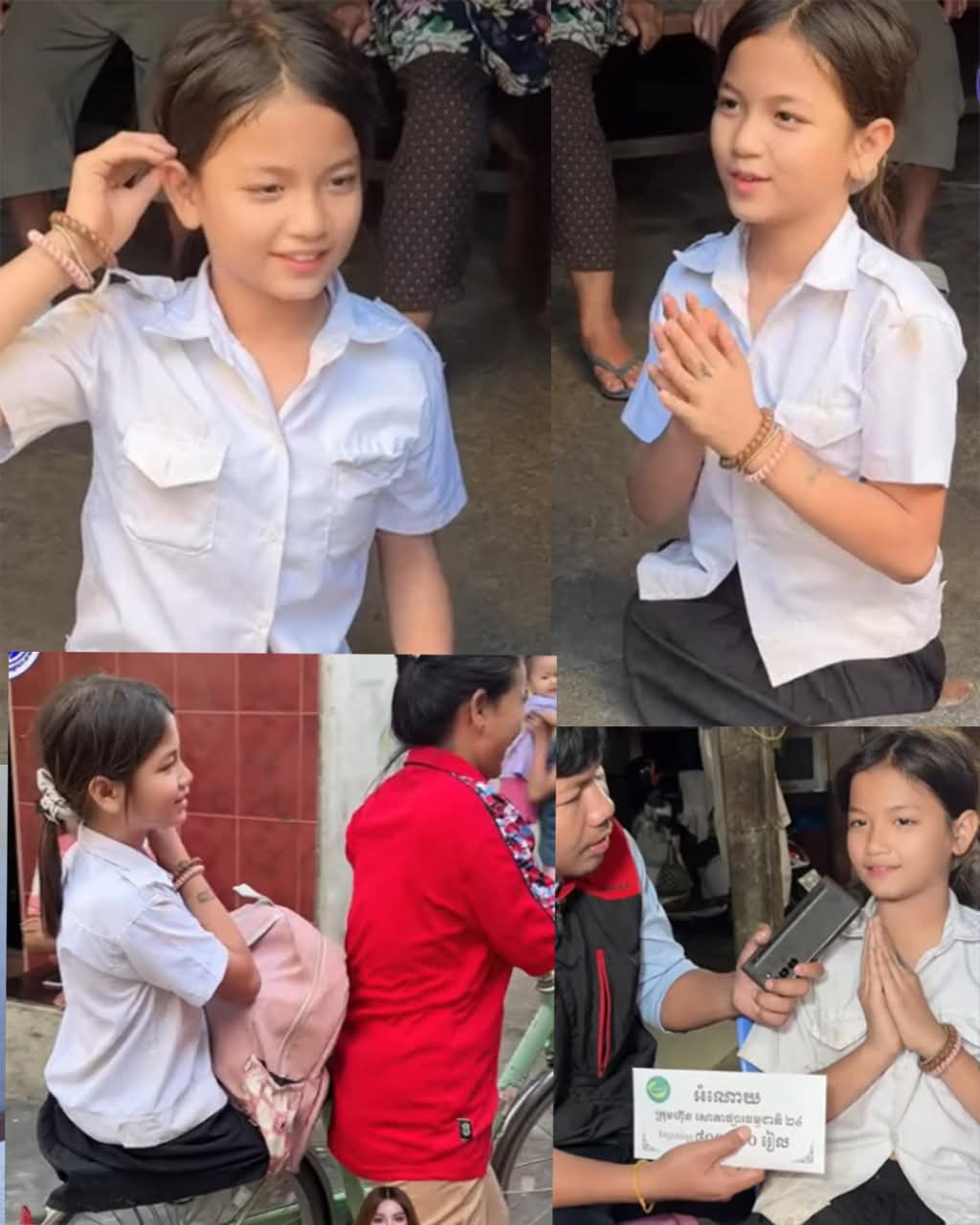 បានឆ្លុះកញ្ចក់ ឃើញមុខខ្លួនឯងស្អាត គឺសប្បាយចិត្តហើយ ត្រូវពេញចិត្តអ្វីដែលខ្លួនឯងមាន។ ប្អូនស្រីត្រូវរថយន្តកៀរ បណ្ដាលអោយពិកាជើងទាំងពីរ នៅព្រែកព្នៅ តែប្អូនស្រីញញឹមជាប់ជានិច្ច 😢 សព្វថ្ងៃ ប្អូនស្រីកំពុងខំប្រឹងរៀន និងកំពុងរៀនថ្នាក់ទី៥។